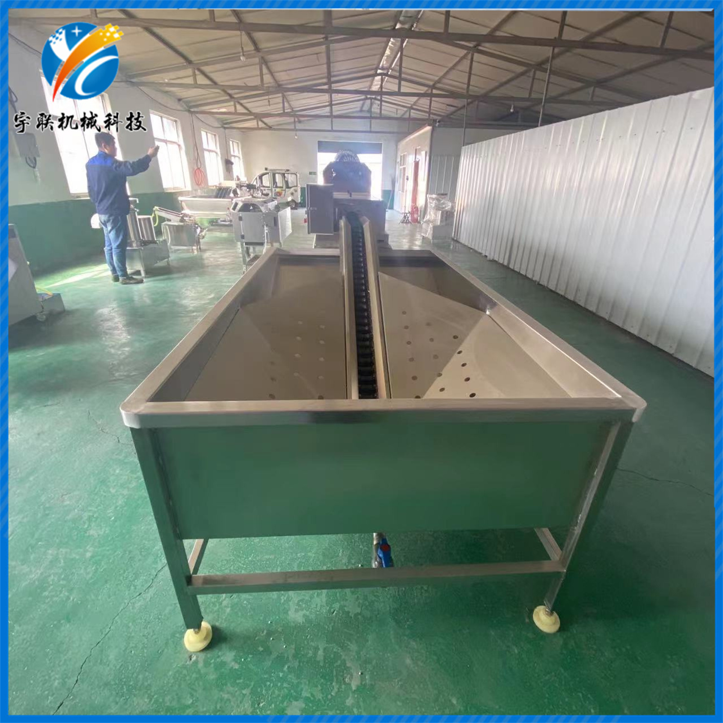 全自動(dòng)洗蛋機(jī)是通過(guò)人工將蛋品放置于收到平臺(tái)或水槽中,通過(guò)減速機(jī)對(duì)鏈條的帶動(dòng),將平臺(tái)或水槽中的蛋品進(jìn)行輸送,輸送過(guò)程中可分別通過(guò)常溫水清洗、風(fēng)干、光檢、消毒噴淋、噴油,最后根據(jù)對(duì)蛋品的不同需求將蛋品通過(guò)人工或裝托機(jī)將蛋品集中回收、包裝。